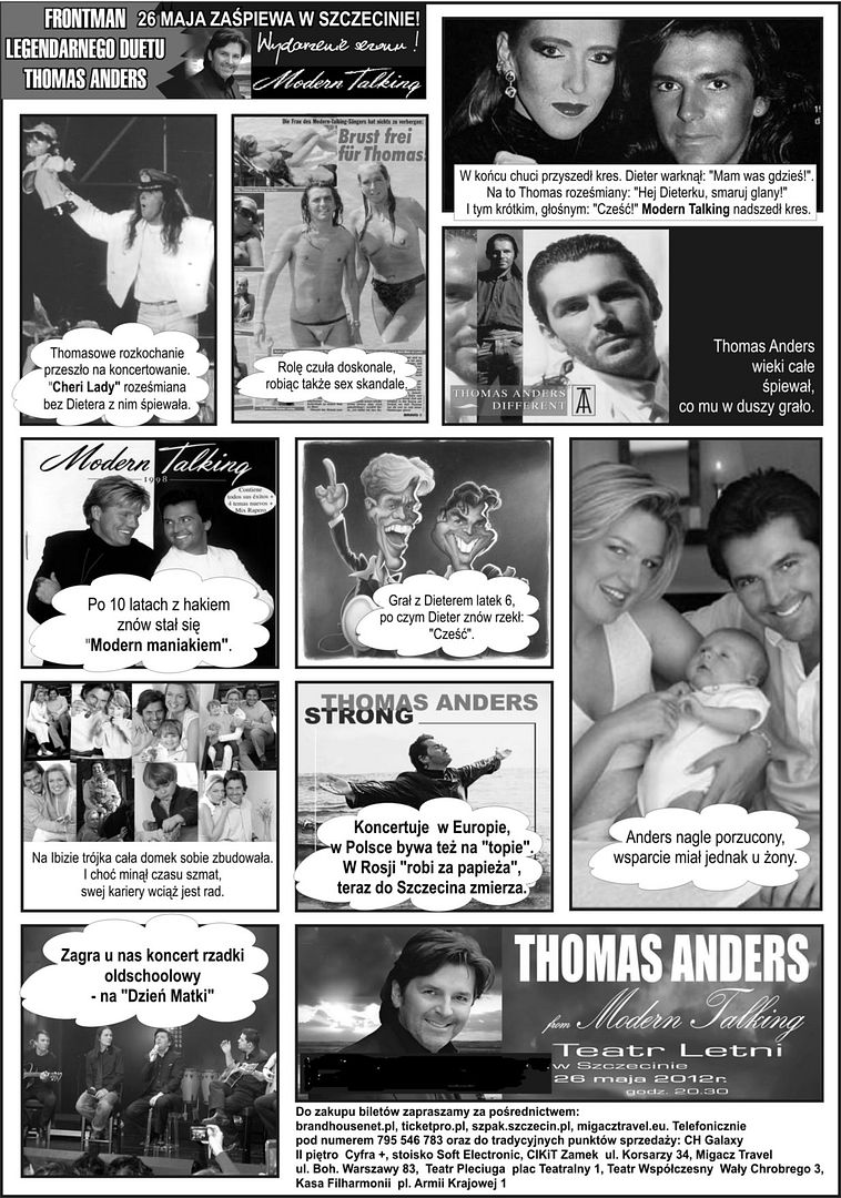 W jednej z gazet woj. zachodniopomorskiego ukaże się artykuł promujący koncert Thomasa Andersa w Szczecinie.